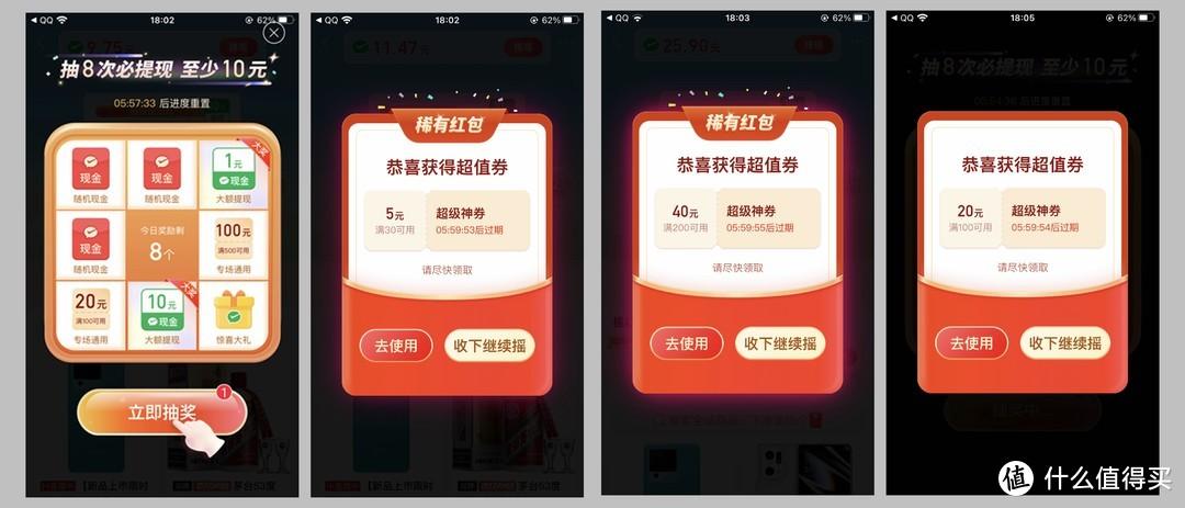 和前面的活动一样,每日摇红包也是针对部分用户开放,但是摇红包的开放程度貌似比超级秒杀多得多,从我爆料的评论区来看,8成的用户都能看到这个活动,但是大部分人都反馈优惠券是越摇越少了,刚开始很容易摇到200-40、500-100的大额券,后面基本上就是20-5或者是没有了,我的亲身经历也差不多是这样。每日摇红包有点像小一号的超级秒杀,它的优惠券额度最高就是500-100了,不过双十一期间我在站内看到过有摇到500-115的。