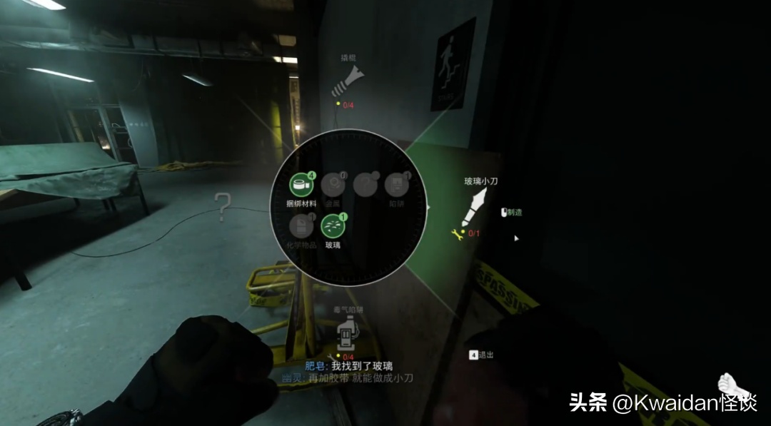 最终关还是制造道具,反击boss的套路,对讲机里幽灵让玩家找玻璃做小刀,有了刀才能攻击敌人。